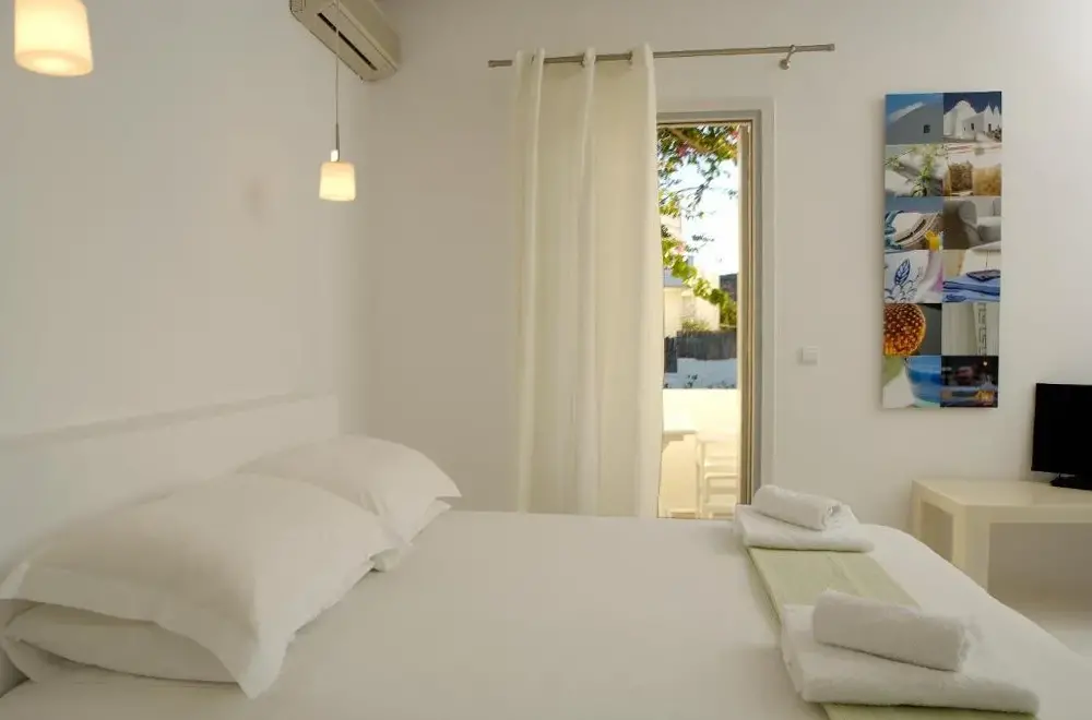 Excellent location just a few minutes walk from main port of Pollonia. Beautiful spacious rooms that have everything you need and a fantastic balcony. Really enjoyed using the ebikes and the complimentary breakfast goods.